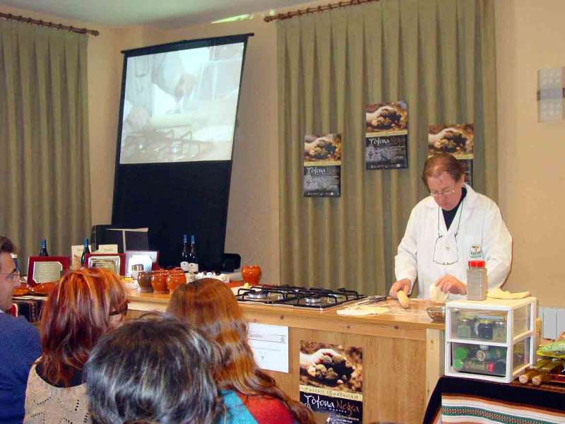 Maroto incidió en que “los cocineros deben aprender a no gastar dinero en balde con la aplicación de la trufa a los platos. En ocasiones no hacen falta veinte gramos de trufa si no diez para conseguir nuestro objetivo y el resultado es el mismo”. El maestro apuntó que la trufa se aplica tanto en la cocina castellana como en la dieta mediterránea. En este sentido dijo que los medios de comunicación “han contribuido a que los platos que un día se elaboran en Barcelona al día siguiente lleguen a Soria o a la inversa”. El cocinero soriano apuntó que todo el que se enfrenta a un plato elaborado con trufa debe llegar a la cocina “con humildad y con ganas de aprender”. En este sentido consideró “de sumo interés que se mezclen experiencias culinarias entre profesionales próximos al Mediterráneo y del centro de España”. Además enfatizó que “los alumnos de las escuelas de Hostelería deben aprender a trabajar con este producto en su justa medida, ya que el precio es un condicionante importante”. Maroto elaboró, ante los asistentes, diferentes platos, explicando cómo se debe aplicar la trufa como complemento o protagonista de cada creación culinaria de cuchara o tenedor, en carnes, pescados o postres. Mientras, Ignacio Porcar, profesor de la Escuela de Hostelería de Castelló incidió en que “en estas jornadas los alumnos tienen la oportunidad de trabajar con la trufa, un producto que por su coste es difícil aplicar a las clases”. Los alumnos aprendieron a macerar, elaborar ensaladas, jugos y también embutidos. Además los futuros cocineros serán los protagonistas del concurso de cocina que se ha preparado para el próximo domingo en el pabellón polivalente de Portell.