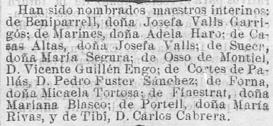 Han sido nombrados maestros interinos de Beniparrell, doña Josefa