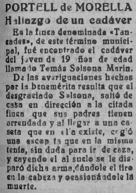 (pàg.106) [CAMAÑES, Luisa (1990): Portell. Usos y costumbres, desde el siglo XIX al XX. Imprés en
