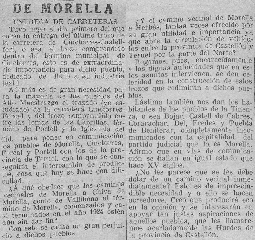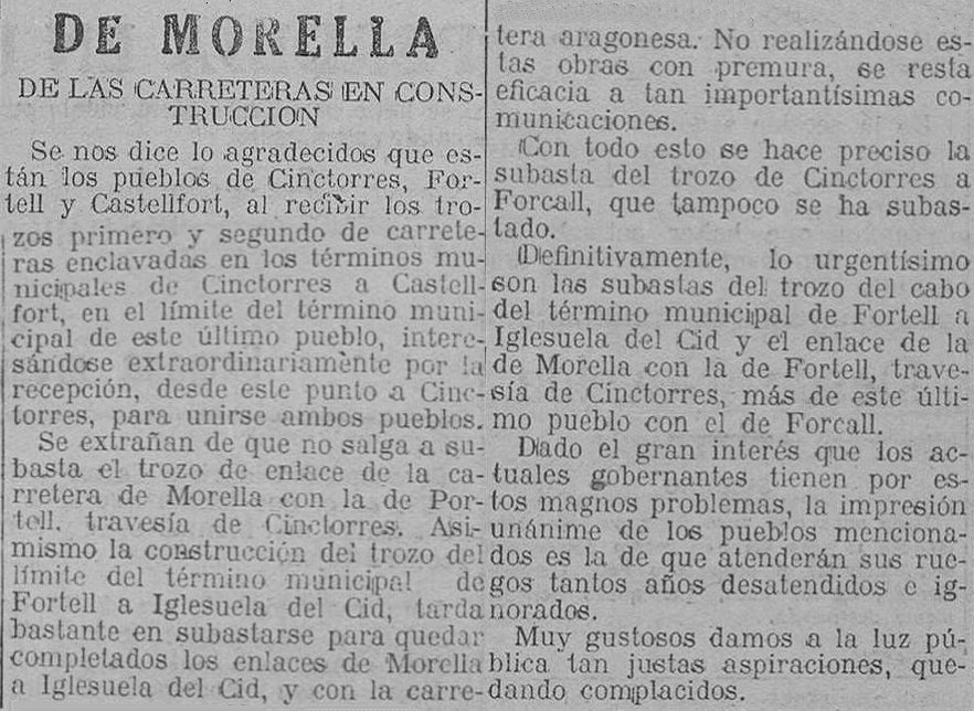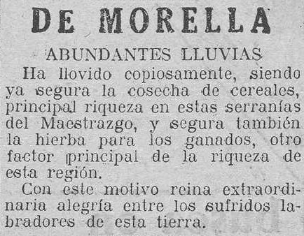 ECOS DE MORELLA. CRÓNICA SEMANAL. Según nos