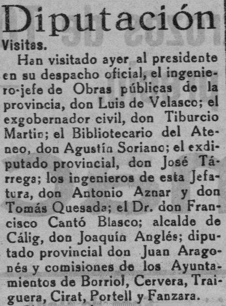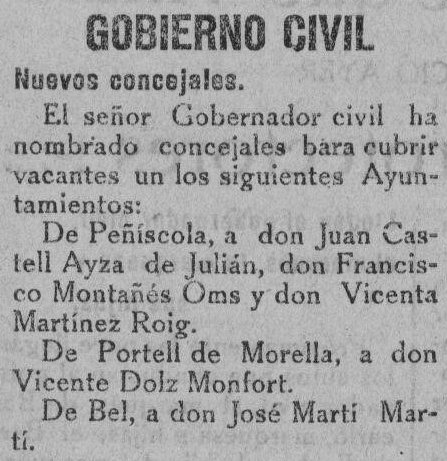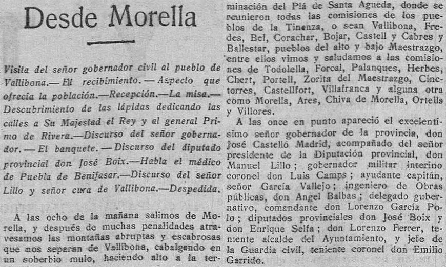 Gobernador Civil al pueblo de Vallibona. [...] A las ocho de la