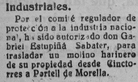 trasladar un molino harinero de su propiedad desde Cinctorres