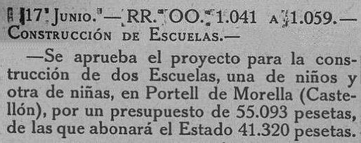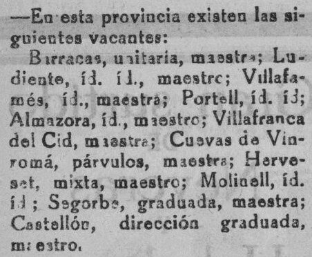 ESCUELAS VACANTES. PROVINCIA DE CASTELLÓN.- En