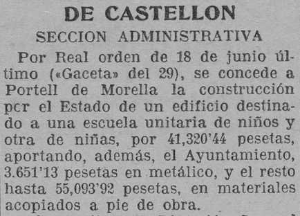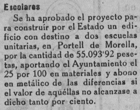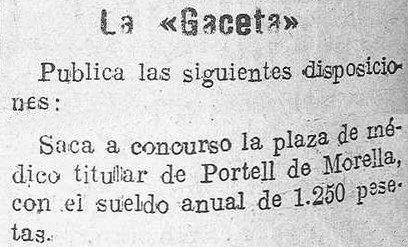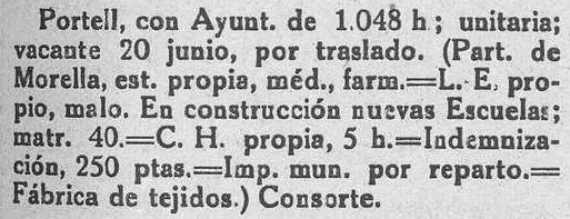 titular de Portell de Morella, con el sueldo anual de 1.250