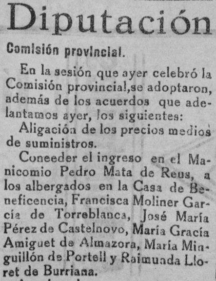 ingresada a un centre per malalts mentals de València. Segons el mateix