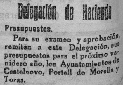 de Morella. Encargado del reloj, con 80 pesetas anuales