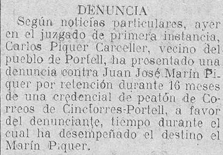 Cinctorres-Portell, a favor del denunciante, tiempo durante el
