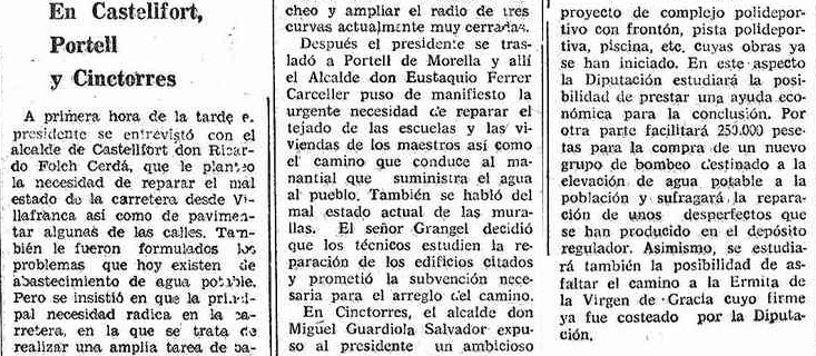 Margalef, allí estuve tres años como párroco de los tres pueblos. [...] Luego el Sr. Obispo me destinó a Cinctorres, Castellfort y