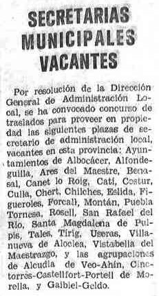 local, vacantes en esta provincia: Ayuntamientos de Albocácer,